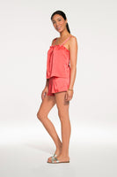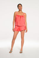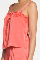 The Espino cami with elasticized drawstring moves with you and bra keepers hold straps in place. Pair with the Espino Aster shorts, Rose wide leg pant for lounging or style it your way. Adds a touch of luxury to trousers, skirts, or jeans.