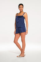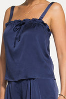 The Espino cami with elasticized drawstring moves with you and bra keepers hold straps in place. Pair with the Espino Aster shorts, Rose wide leg pant for lounging or style it your way. Adds a touch of luxury to trousers, skirts, or jeans.